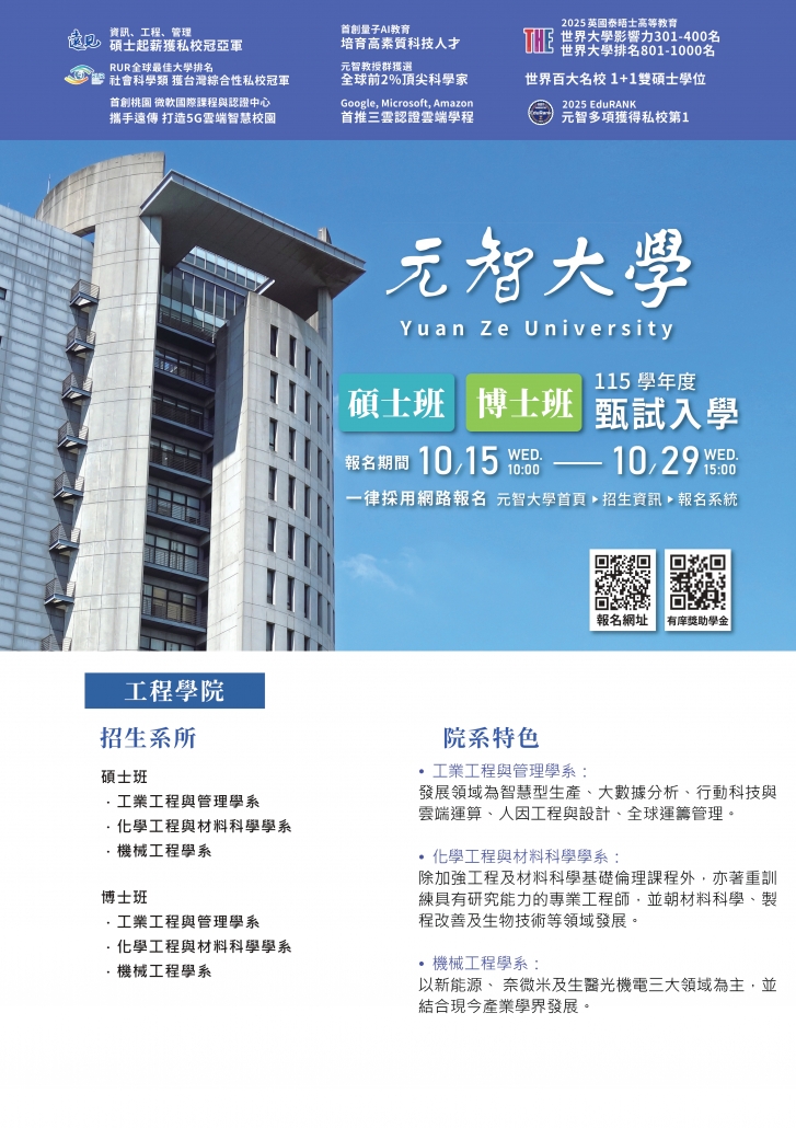 Application Website: https://exam.yzu.edu.tw/NewNetapply/